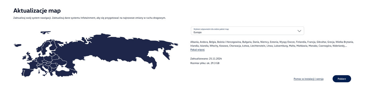na stronie myVolkswagen brak strony z mapami do aktualizacji